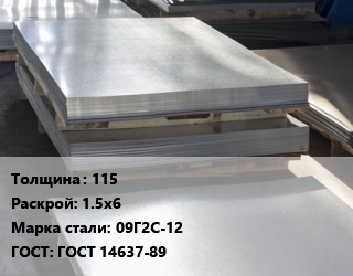 Лист горячекатаный 115 1.5х6 Сталь: 09Г2С-12 ГОСТ: ГОСТ 14637-89