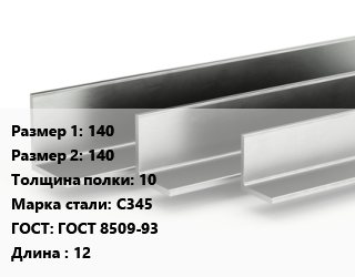 Уголок горячекатаный 140х140х10 Сталь: С345 ГОСТ: ГОСТ 8509-93 L=12