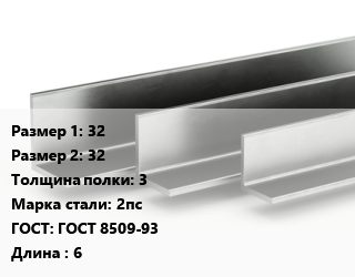 Уголок горячекатаный 32х32х3 Сталь: 2пс ГОСТ: ГОСТ 8509-93 L=6