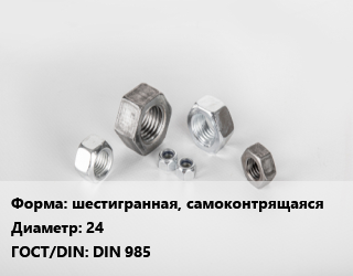 Гайка шестигранная, самоконтрящаяся D=24 DIN 985