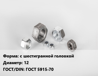 Гайка с шестигранной головкой D=12 ГОСТ 5915-70