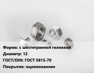 Гайка с шестигранной головкой D=12 ГОСТ 5915-70 оцинкованная