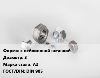 Гайка с нейлоновой вставкой D=3 Сталь: А2 DIN 985
