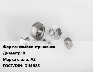 Гайка самоконтрящаяся D=8 Сталь: А2 DIN 985, шт, нержавеющая сталь цена от 8.07 ₽ / кг, где купить, условия доставки в Туле и Тульской области