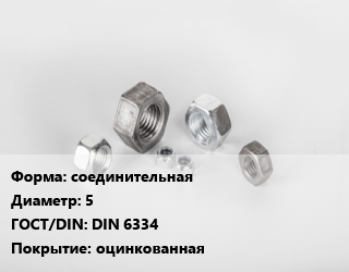 Гайка соединительная D=5 DIN 6334 оцинкованная