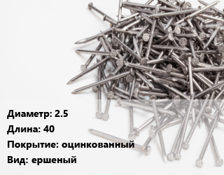 Гвоздь 2.5х40 оцинкованный ершеный, чертеж 7811-7120, кг цена от 139.33 ₽ / кг, где купить, условия доставки в Туле и Тульской области