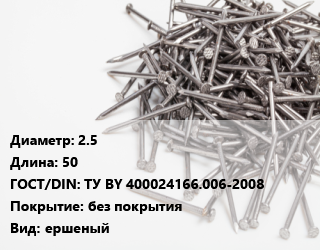 Гвоздь 2.5х50 ГОСТ: ТУ BY 400024166.006-2008 без покрытия ершеный