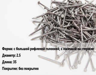 Гвоздь с большой рифленой головкой, с насечкой на стержне 2.5х35 без покрытия