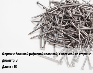 Гвоздь с большой рифленой головкой, с насечкой на стержне 3х55 белый цинк, чертеж 7811-7127,чертеж 7811-7128, кг цена от 129.56 ₽ / кг, где купить, условия доставки в Туле и Тульской области