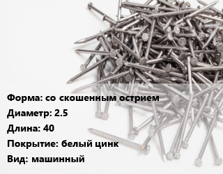 Гвоздь со скошенным острием 2.5х40 белый цинк машинный