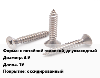 Саморез с потайной головкой, двухзаходный D=3.9 L=19 оксидированный