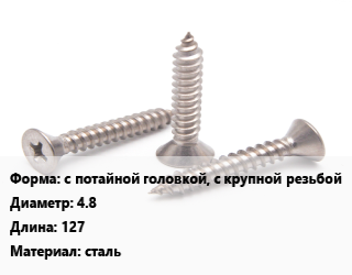 Саморез с потайной головкой, с крупной резьбой D=4.8 L=127 сталь