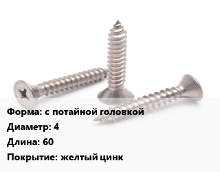 Саморез с потайной головкой D=4 L=60 желтый цинк, упаковка 4500 шт цена от 1 793 ₽ / кг, где купить, условия доставки в Туле и Тульской области