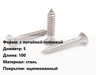 Саморез с потайной головкой D=5 L=100 сталь оцинкованный