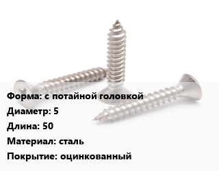 Саморез с потайной головкой D=5 L=50 сталь оцинкованный