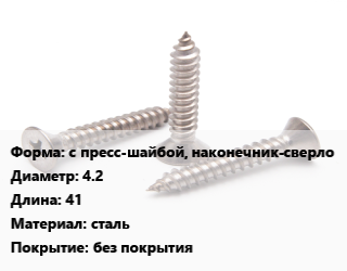 Саморез с пресс-шайбой, наконечник-сверло D=4.2 L=41 сталь без покрытия