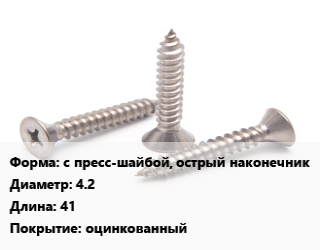 Саморез с пресс-шайбой, острый наконечник D=4.2 L=41 оцинкованный