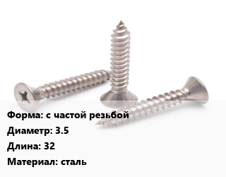 Саморез с частой резьбой D=3.5 L=32 сталь