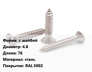 Саморез с шайбой D=4.8 L=76 сталь RAL 5002