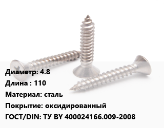 Саморез 4.8 L=110 сталь оксидированный ГОСТ: ТУ BY 400024166.009-2008