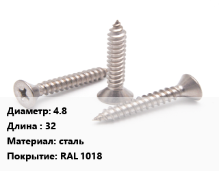 Саморез 4.8 L=32 сталь RAL 1018, упаковка 1000 шт, для кровельных материалов цена от 1 583 ₽ / кг, где купить, условия доставки в Туле и Тульской области