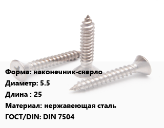 Саморез наконечник-сверло D=5.5 L=25 нержавеющая сталь ГОСТ: DIN 7504, упаковка 420 шт цена от 1 435 ₽ / кг, где купить, условия доставки в Туле и Тульской области