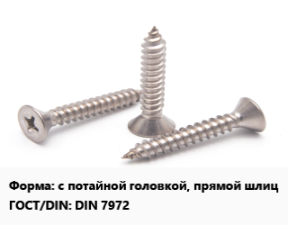 Саморез с потайной головкой, прямой шлиц ГОСТ: DIN 7972