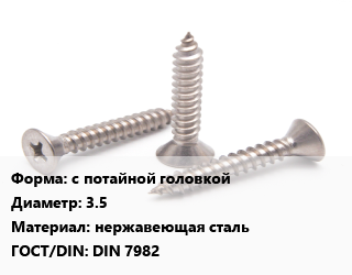 Саморез с потайной головкой D=3.5 нержавеющая сталь ГОСТ: DIN 7982