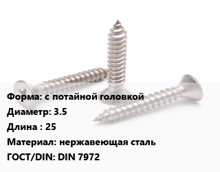 Саморез с потайной головкой D=3.5 L=25 нержавеющая сталь ГОСТ: DIN 7972