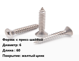 Саморез с пресс-шайбой D=6 L=60 желтый цинк