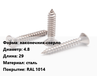 Саморез наконечник-сверло D=4.8 L=29 сталь RAL 1014, кг, для кровельных материалов цена от 522.93 ₽ / кг, где купить, условия доставки в Туле и Тульской области
