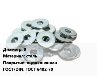 Шайба 8 сталь оцинкованная ГОСТ: ГОСТ 6402-70