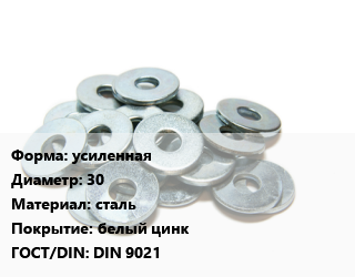 Шайба усиленная D=30 сталь белый цинк ГОСТ: DIN 9021