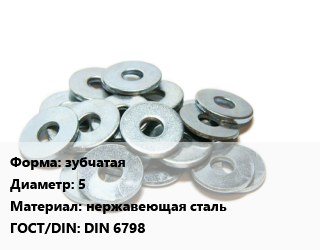 Шайба зубчатая D=5 нержавеющая сталь ГОСТ: DIN 6798, шт цена от 2.54 ₽ / кг, где купить, условия доставки в Туле и Тульской области