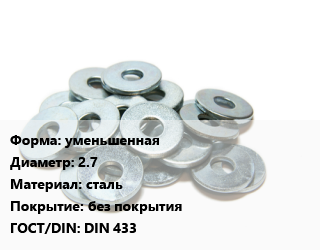 Шайба уменьшенная D=2.7 сталь без покрытия ГОСТ: DIN 433