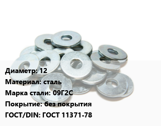 Шайба 12 сталь Сталь: 09Г2С без покрытия ГОСТ: ГОСТ 11371-78