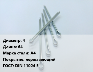 Шплинт 4 L=64 Сталь: А4 нержавеющий ГОСТ: DIN 11024 E