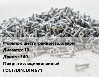 Шуруп с шестигранной головкой 10х140 оцинкованный ГОСТ: DIN 571