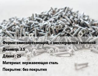 Шуруп самонарезающий, с шестигранной головкой 3.5х25 нержавеющая сталь без покрытия, кг, А2,А4 цена от 167.14 ₽ / кг, где купить, условия доставки в Туле и Тульской области