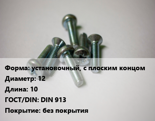 Винт установочный, с плоским концом 12х10 DIN 913 без покрытия