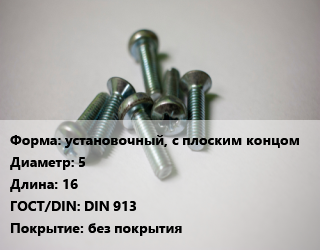 Винт установочный, с плоским концом 5х16 DIN 913 без покрытия