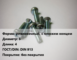 Винт установочный, с плоским концом 5х4 DIN 913 без покрытия