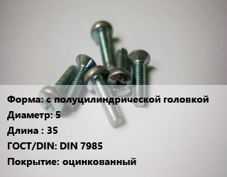 Винт с полуцилиндрической головкой 5х35 DIN 7985 оцинкованный, РМЗ, кг цена от 139.6 ₽ / кг, где купить, условия доставки в Туле и Тульской области