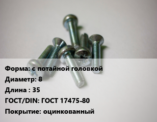 Винт с потайной головкой 8х35 ГОСТ 17475-80 оцинкованный, упаковка 1000 шт,упаковка 5 кг, кг цена от 401.32 ₽ / кг, где купить, условия доставки в Туле и Тульской области