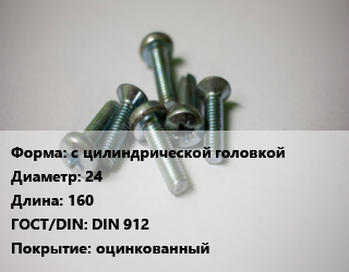 Винт с цилиндрической головкой 24х160 DIN 912 оцинкованный, 8.8, кг цена от 633.29 ₽ / кг, где купить, условия доставки в Туле и Тульской области