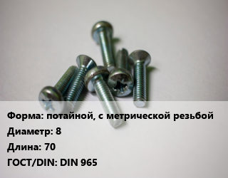 Винт потайной, с метрической резьбой 8х70 DIN 965