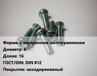 Винт с внутренним шестигранником 6х16 DIN 912 оксидированный