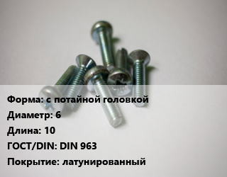 Винт с потайной головкой 6х10 DIN 963 латунированный