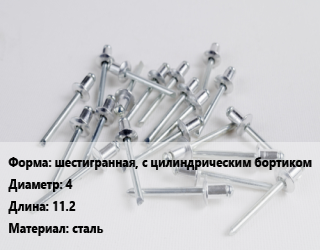 Заклепка шестигранная, с цилиндрическим бортиком 4х11.2 сталь, шт цена от 3.29 ₽ / шт, где купить, условия доставки в Туле и Тульской области