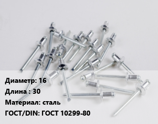Заклепка 16х30 сталь ГОСТ: ГОСТ 10299-80, упаковка цена от 122.31 ₽ / шт, где купить, условия доставки в Туле и Тульской области